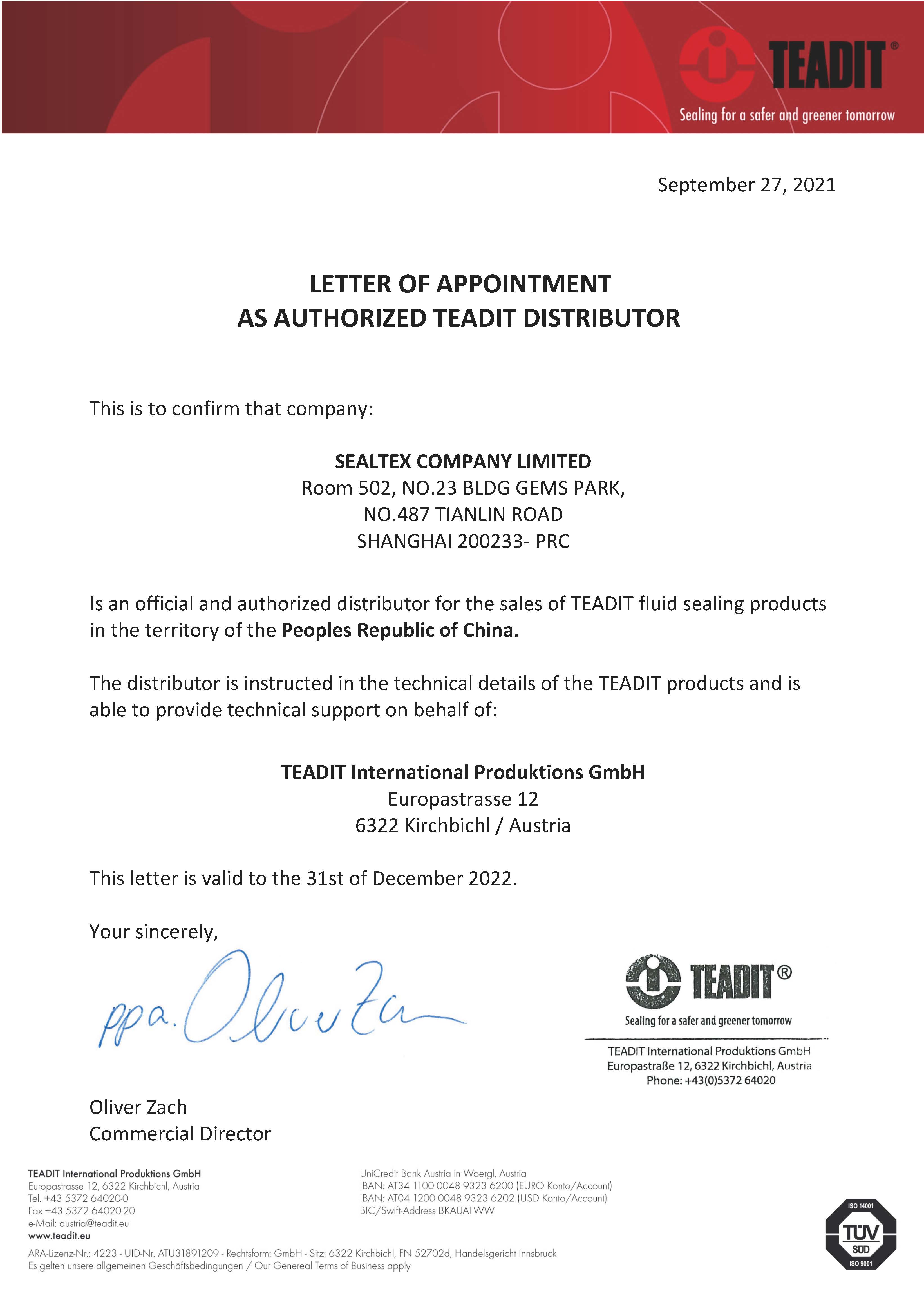 我司與TEADIT(泰迪)簽訂代理合作協議